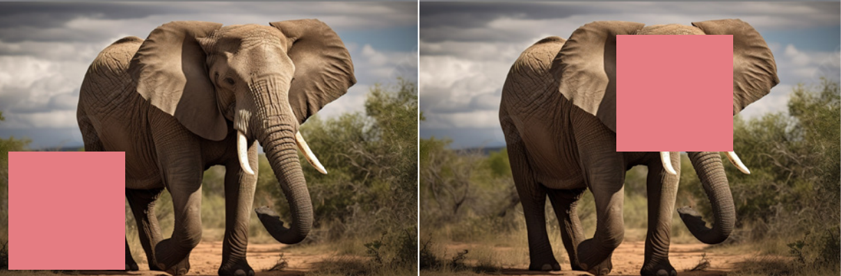 یک راه برای فهمیدن اینکه مدل به چه پیکسلهایی از ورودی حساس است و براساس آنها تصمیم میگیرد، به وسیله تغییراتی در ورودی صورت میگیرد به این صورت که در تصویر ورودی بلوکهایی قرار میدهیم و میبینیم که ایجاد آنها چه تاثیری روی خروجی شبکه میگذارد برای مثال در تصاویر پایین توزیع احتمالاتی خروجی آخر (احتمال هر دسته) در دستهبندی (classification) چگونه تغییر میکند.