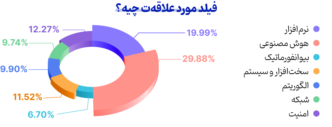 شاید بهترین برداشتی که بتوان از انتخاب فیلد دانشجویان داشت، شناخت حدودی ترندهای روز در حوزهٔ کامپیوتر است. همانطور که انتظار میرفت، فیلد هوش و فیلدهای مشابه بیشترین طرفداران را دارند و نرمافزار هم گویا بیشتر بهدلیل شروع به کار بچههای کامپیوتر در شرکتهای نرمافزاری و بازار خوبی که دارد، توانسته توجه خیلیها را جلب کند؛ اما یکبار دیگر خوب است تأکید کنیم که بهدنبال علایق خود بروید، نه ترند روز!