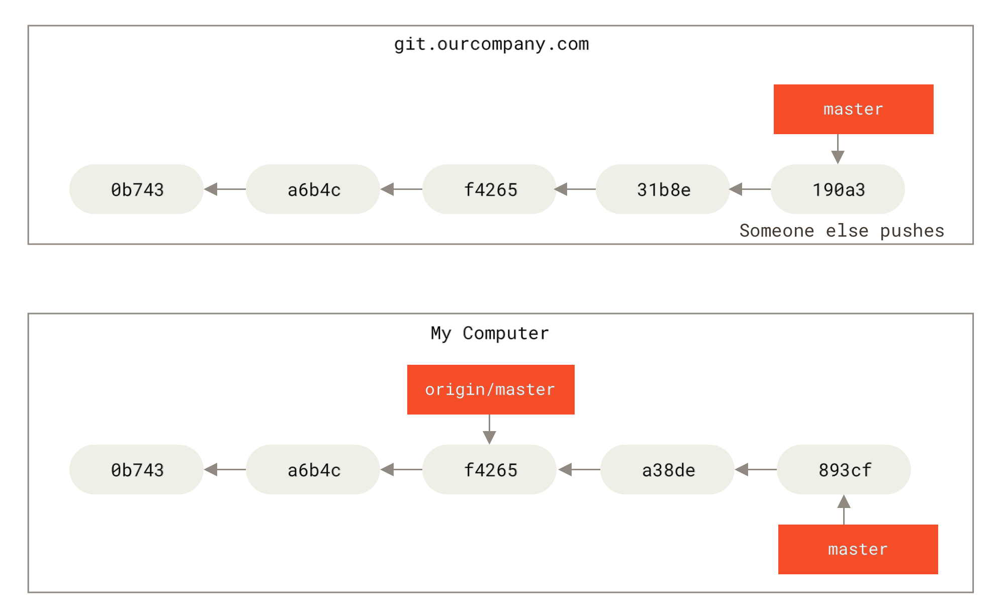 اگر شما تاریخچه را تغییر دهید (مثلاً با Rebase) و بخواهید روی سرور Push کنید، گیت خطا میدهد چون تاریخچه محلی شما با تاریخچه سرور همخوانی ندارد (Diverged).
